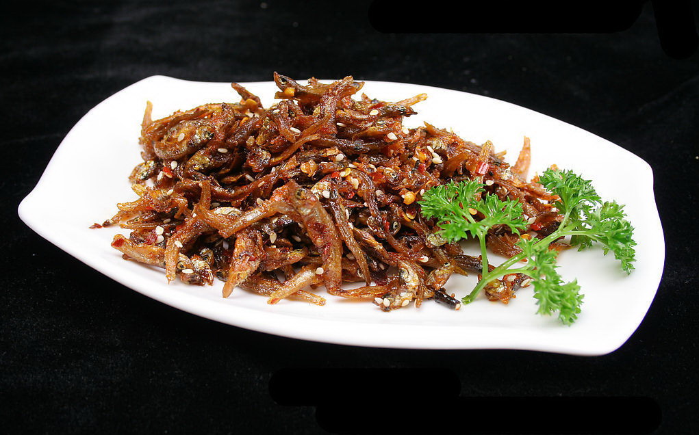 原料為小魚(yú)蝦,其中以“青皮嫩”為最佳,肉多味美,魚(yú)蝦捕撈上趁新鮮將其沖洗干凈,瀝干水,均勻地?cái)傇跓徨佔(zhàn)永铮ㄥ伾纤⒁粚佑褪顾鼈儾徽冲仯0胄r(shí)左右,這些魚(yú)蝦就已經(jīng)焙干,一側(cè)焦黃,透出薰香,再剔去肚腸,炒豆豉辣椒或?qū)⑶嘟非嗨馇屑?xì)同炒均好,味道絕美。