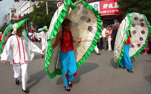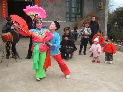 一旦一丑表演,用手巾和折扇作道具。旦的表演含蓄細(xì)膩,動(dòng)作優(yōu)美輕俏,以眉目傳情(脧眉眼)為特點(diǎn)。丑的表演活潑聰明,俏皮逗樂(lè),動(dòng)作粗獷。流傳在境內(nèi)的地花鼓有“洗菜心”、“銅錢(qián)歌”、“望郎歌”等。