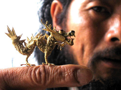 長(zhǎng)沙地區(qū)的傳統(tǒng)工藝品,系用棕櫚葉編成的各種動(dòng)物,種類(lèi)很多,如鳥(niǎo)、蟲(chóng)、魚(yú)、蝦、鶴、蛇等,形象逼真,栩栩如生。曾參加德國(guó)萊比錫世界博覽會(huì),人們贊嘆它“不可思議”,法國(guó)藝術(shù)館特意收購(gòu)珍藏。棕櫚為常綠喬木,望城縣湘江兩岸都有種植,藝人們采集棕葉,編織成各種小動(dòng)物,成為“江南一絕”。