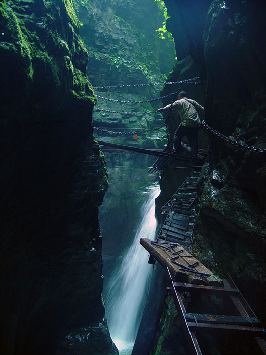 坐龍峽,經(jīng)由300萬(wàn)年大自然的風(fēng)吹、水蝕而成,一直隱逸于湘西茫茫十萬(wàn)群山之中。它長(zhǎng)約3500米,最大高差達(dá)300余米;寬處不足丈余,窄處僅容一人通過(guò);谷內(nèi)絕壁縱疊,溪瀑橫懸,崖樹(shù)斜逸,異草遍被。