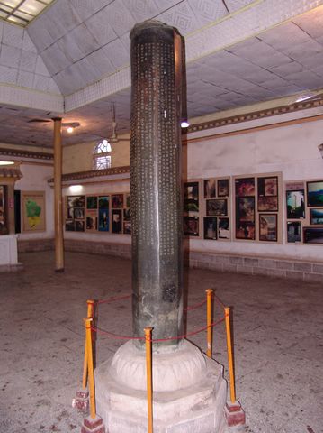 彭士愁戰(zhàn)敗后于后晉天福五年(公元940年)與馬希范議和,把戰(zhàn)爭的經(jīng)過和議和的條款,鐫刻于銅柱之上。銅柱重五千斤,高丈二尺,入土六心,形為八面,中空,內(nèi)實鉅錢,柱端覆蓋銅頂,銘誓狀于銅柱之上,立于會溪,宋天禧二年(公元1018年)重立時,又羼刻了一些土官銜名。清中葉,柱上銅頂被盜,沉于江心,柱內(nèi)銅錢亦被人以飴粘錢殆盡。清光緒十一年(公元1885年),永順府知府張曾揚建亭保護。民國年間亭被毀。”銅柱的銅質(zhì),精純光潤;八面所鐫顏、柳體陰文,雖經(jīng)千載風雨洗刷,霜雪蝕磨,仍清晰如初。溪州銅柱是研究土家族古代歷史的重要文獻。土家族視銅柱為神物。