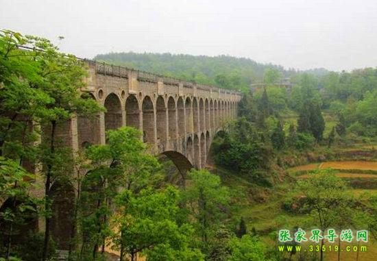巖旯窠苗寨有中國最大的石拱橋渡槽--巖旯窠大石橋,號稱“中國的加德橋”(此橋與著名的古羅馬的加德橋比較,功能相同、結(jié)構(gòu)相似,是我國最大石拱橋渡槽之一)。