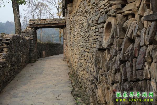 苗王城是西南地區(qū)苗族留存至今唯一一座保存得較好的集政治、經(jīng)濟(jì)、文化、軍事和建筑為一體的古苗寨。它占地面積10 平方公里,依據(jù)山形水勢(shì),前后筑有六個(gè)古兵寨。古寨內(nèi)有11 條巷道,巷道內(nèi)有 11 道寨門,巷道以石墻作為屏障并跟各家的院墻連成一體, 而且有專門迷惑敵人的“直角巷道”,