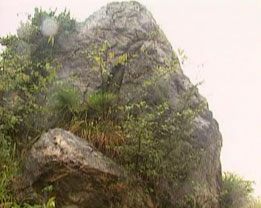 有一天傍晚,王家夫婦正在屋前坪上收稻谷,他倆疼愛(ài)的三歲小孩剛從大門(mén)里爬出來(lái),就被孽龍一陣風(fēng)卷了去。忽聽(tīng)云中大喝一聲:“孽畜,不得作惡!”孽龍?zhí)ь^看見(jiàn)觀音菩薩駕云到此,大吃一驚。但他好久未吃東西了,想先吃了再說(shuō),便張開(kāi)大嘴,將小孩往口中送。觀音菩薩拂塵一指,將孽龍定住,又用手一招,把嚇得半死的小孩拖于懷中,怒斥孽龍道:“你這孽障,作惡多端,如不皈依,修成正果,永不出潭。”說(shuō)罷,口中念念有詞,拂塵一掃,將孽龍打入潭中,并移來(lái)一塊兩丈來(lái)高的大石,壓在潭口上,鎮(zhèn)住孽龍。