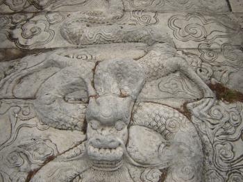 廟前面有學(xué)宮坪,亦名學(xué)坪,坪南端有大明壁。廟宇紅墻黃瓦,氣勢(shì)宏偉。正門曰奎星門,前院左右各植檜樹,常年翠綠,散發(fā)幽香??情T內(nèi)有月形泮池,池周護(hù)以石欄。泮池附近有石坊三座,正南石坊匾額鐫有“斯文在茲”四字,東西兩坊貫通街衢。通過石坊便是大成門。進(jìn)門左右是飛檐綠瓦的鐘鼓亭。大成門通向大成殿,有石鋪甬道直抵大殿臺(tái)基。臺(tái)高一米,全系石塊疊成。臺(tái)階分左右兩道,中有石雕盤龍,綴以云海波濤,栩栩如生,躍然石上。大成殿為歇山式重檐結(jié)構(gòu),周圍有16根圓石柱,內(nèi)外枋、檁、藻井、斗拱、扇梧均五彩施繪,黃瓦飛檐,蔚為壯觀。殿后有亞圣殿,與大成門、奎星門前后襯應(yīng),更顯出大成殿主體的雄偉。