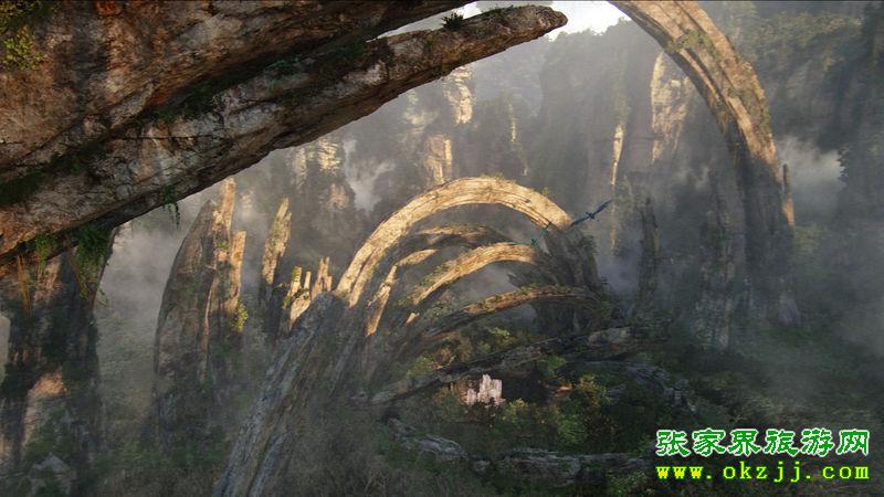 巍巍群山漂浮在天空,云霧繚繞,美麗壯觀……這是電影《阿凡達(dá)》中的經(jīng)典場(chǎng)景。阿凡達(dá)的全球熱映使人們對(duì)這部電影充滿了驚嘆和好奇,而這部影片奇幻的拍攝地到底是在哪里這一問題也引發(fā)了影片熱愛者的紛紛推測(cè)。導(dǎo)演卡梅隆的一句“中國元素給《阿凡達(dá)》大大增色”不僅勾起了旅游愛好者的向往之心,更是引發(fā)了一場(chǎng)不小的爭論。片中美輪美奐的“哈利路亞山”讓人驚嘆向往,現(xiàn)實(shí)版的“哈利路亞山”到底是以黃山還是張家界的武陵源為背景,成了網(wǎng)友和旅游界的熱議焦點(diǎn)。“第42秒出現(xiàn)過張家界的南天一柱,第33分21秒出現(xiàn)過黃石寨的玉屏峰,第55分53秒出現(xiàn)過寶峰湖的瀑布……”在網(wǎng)上,有發(fā)帖者將這些在《阿凡達(dá)》影片中出現(xiàn)過的張家界景致一一羅列。通過慢放發(fā)現(xiàn),影片中大概有25分鐘完全是張家界的山水風(fēng)光。出現(xiàn)多次的是黃石寨前山的南天一柱,金鞭溪的劈山救母出現(xiàn)不低于5次,然而出現(xiàn)最多的還是寶峰湖瀑布和袁家界迷魂臺(tái)里面的擎天柱。而張家界和黃山的最大區(qū)別是黃山是花崗巖地貌,上面非常光滑,幾乎沒有植被,而張家界是石英砂巖地貌,上面植被覆蓋非常茂盛。