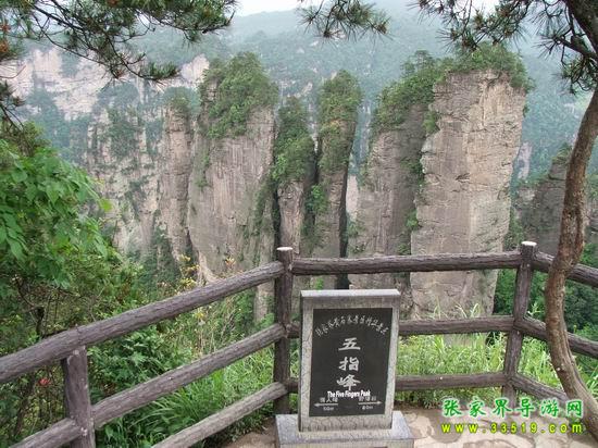 “橫看成嶺側(cè)成峰”,換一個(gè)角度來看摘星臺上望到的那一片山峰。其中五支石峰一字排開,形狀好像手指。當(dāng)?shù)厝苏f這是如來佛的手指——其實(shí)更像我們自己的手指,我們相象中的手指,大自然的“手指”——這些美景、奇景,本來就是出自大自然之手。