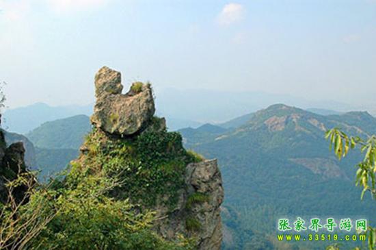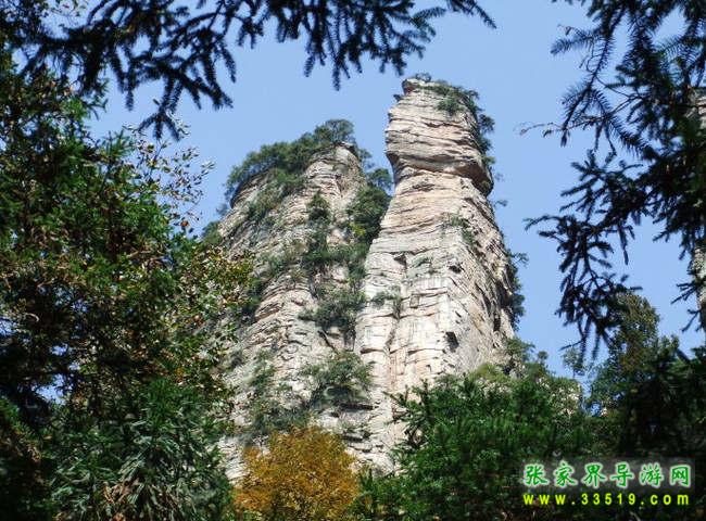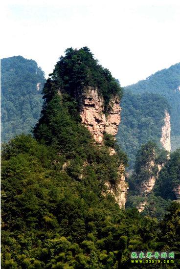 兩支山峰圍成一道天然小石門,大有“一夫當(dāng)關(guān),萬夫莫開”之勢,人稱南天門,據(jù)說過了這道門就是天堂。不過,說來也奇怪,穿過山門之后,山勢為之一變,奇峰怪石,蒼松翠柏,美不勝收,不是天堂,勝似天堂。前面這支位于南天門身邊高200多米的孤立石峰,叫南天一柱。它與一般的山峰不大相同,一般的山峰是下面粗、上面細(xì),而它是上面粗、下面細(xì)。山風(fēng)吹來,這根石柱好像搖搖欲墜,驚心動魄之余,仿佛耳邊還能隱隱約約聽到億萬年前地殼運(yùn)動時(shí)發(fā)出的轟隆隆的巨響——為了“安全”我們還是繼續(xù)往前走吧。