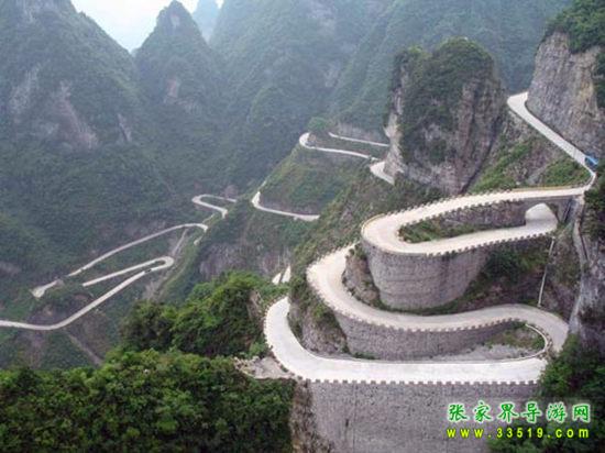 極具險(xiǎn)絕奇觀的天門山盤山公路——“通天大道”則是天門山的另一壯景。通天大道態(tài)勢(shì)險(xiǎn)絕,蕩氣回腸,更以蜿蜒迂回穿行于山體絕壁之天險(xiǎn)而“堪稱天下第一公路奇觀”。它全長(zhǎng)10.77公里 ,從標(biāo)志門直達(dá)天門洞腳下,海拔從200米急劇提升至1300米,共有九十九個(gè)彎,大道兩側(cè)絕壁千仞,空谷幽深,180度的急彎此消而彼長(zhǎng),層層疊起,中國(guó)書(shū)法協(xié)會(huì)常務(wù)副會(huì)長(zhǎng) 沈鵬 先生走過(guò)通天大道后欣然為其題字“曲道通天”,字體遒勁挺拔,與通天大道的奇絕天下相融為一體。