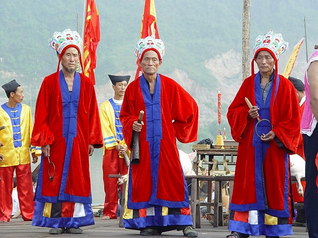 梯瑪俗稱土老司,意為敬神的人,土家族一年一度的“調(diào)年擺手”敬神祭祀活動,都由梯瑪一手執(zhí)掌,祭祀過程中梯瑪演唱的敬神之歌就叫“梯瑪神歌”。為真實(shí)演繹出湘西土家的神秘歷史,湘西幾位幸存的梯瑪大師、鬼谷神功的四十三代傳人、在歐美多次舉辦過演唱會的苗歌皇后龍仙娥,四上人民大會堂匯報(bào)演出的侗歌合唱團(tuán)以及土家蜘蛛人等一批民間藝人參與演出。200多名演職人員中,年齡最大的96歲,最小的3歲,由湘西地區(qū)原生態(tài)演員和群眾演員組成。