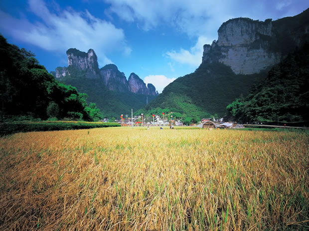 下 午: 乘環(huán)保車40分鐘抵達有“峰林之王”之稱的天子山自然風(fēng)景區(qū):“誰人識得天子面,歸來不看天下山”,可見天子山風(fēng)光旖旎,景色秀美,景點眾多,游覽集自然于人文于一體的賀龍公園、御筆峰、仙女獻花、西海石林、石船出海等,可登上天子山最高點天子閣,遠眺天子山全景。步行2小時下山(可自費乘天子山索道下山,67元/人)到達十里畫廊風(fēng)景區(qū),可游覽到:張家界十大絕景之一的采藥老人、三姐妹峰、黃昏戀、金雞報曉、夫妻抱子、天狗望月等景點(可自費乘觀光小火車游覽全程,單程38元/人)。