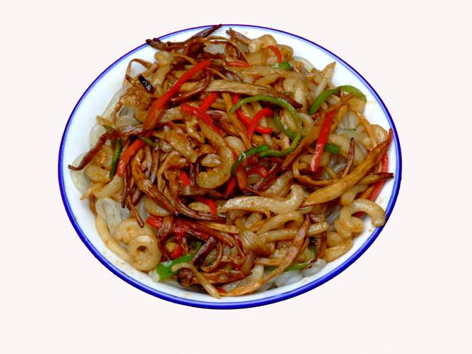 《張家界草帽面》。 這個名字的由來是因為老板常年戴著草帽賣面,臊子非常香,可以添加,面是他自己加工的據(jù)說是全手工的,老板人很古怪,每天只賣那么一點,以前更古怪,只有星期1、3、5的晚上9點才有賣,想吃他家的草帽面居然還得跟他打電話問他是否心情好,出不出來賣面?預(yù)約了才不會撲空。但是就因為這點神秘,所以他家的面有些神話色彩。在汽車站口百貨大樓東門對面的巷子口,一輛板車上面掛了一頂草帽,那就是了,不過每天下午1點左右就沒了,要吃啊,嘿嘿,您趕早!能不能吃的上,得看您造化咯!