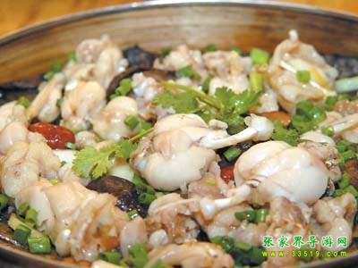 華南湍蛙,又名石蛙,當?shù)厣矫袼追Q“梆梆”,屬兩棲綱蛙科動物,它是捕捉水蛇的能手。華南湍蛙平常生活在溪流石潭中,有時晚上上岸活動。它與斑魚交配產子。華南湍蛙無論白天或黑夜,都能發(fā)出“梆梆”的叫聲,故俗名“梆梆”。華南湍蛙的肉十分細嫩鮮美,尤其燒湯,比雞湯還香甜。它營養(yǎng)豐富,是名貴食品之一,也是待客的上品。