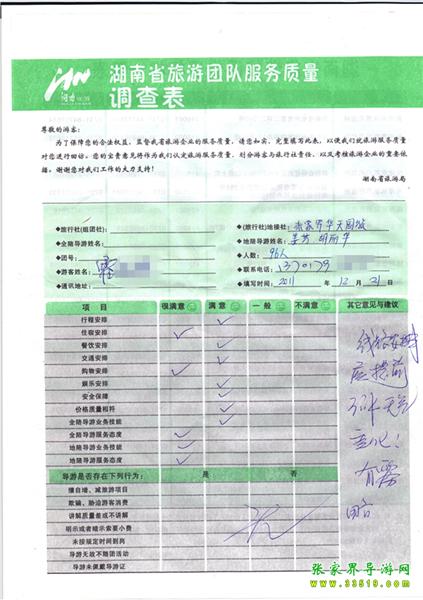 2011年12月21日霍先生一行96人旅游質(zhì)量反饋